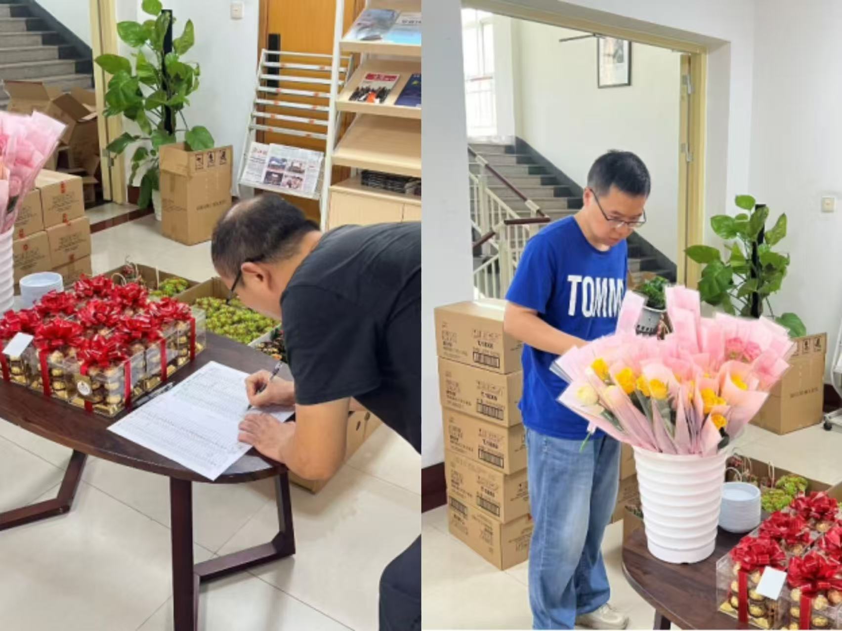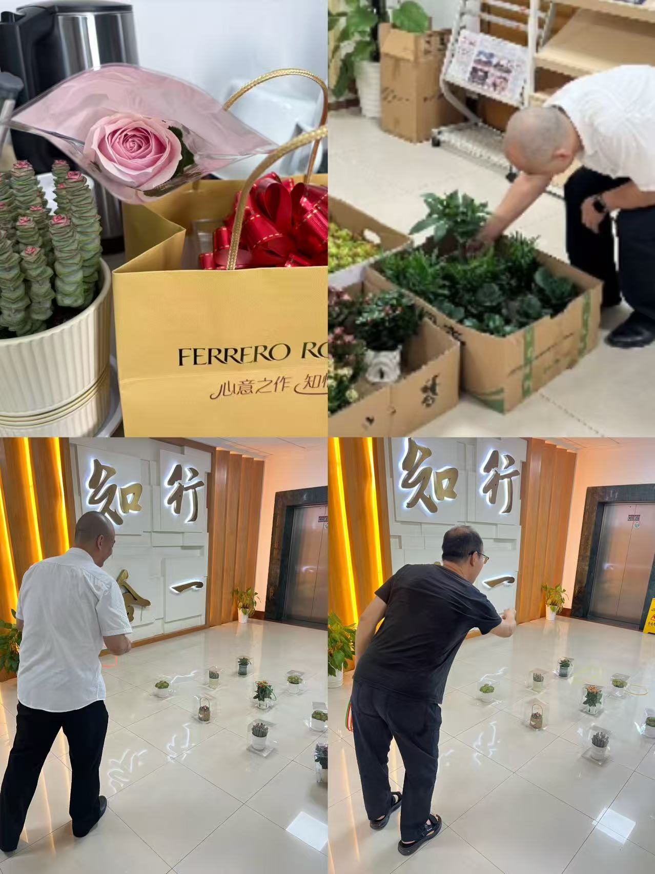 活动现在绿植小盆栽、巧克力等奖品依次整齐地摆放在地面上,等待着老师们的“幸运一击”。老师们在工会人员引导下有序排队,通过简单的签到领取套圈。他们或凝神屏息,或轻松一掷,每当有老师套中奖品时,现场便爆发出热烈的欢呼和掌声,气氛一度达到高潮。