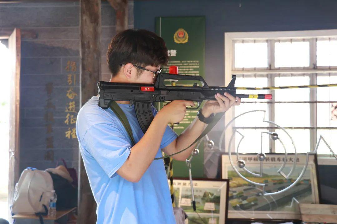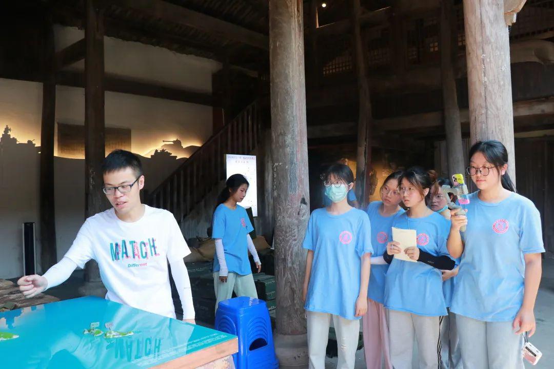 在双溪口乡周扎村岩前自然村,实践服务团跟随双溪口乡团委书记蔡来津参观了浙西南红色军品陈列馆。陈列馆于2019年建成,是一处木质构建、黛瓦盖顶、古朴清雅的传统合院式建筑。推开斑驳的大门,一幅红军胜利会师图在正中矗立,重现了一部豪情万丈的英雄史诗。队员们跟随蔡书记依次参观了战壕展区、海陆空三军展区、军号展区、军衔展区、老兵永远跟党走展区,观看了3000多件错落有序排列着的展品,在丰富的图文、实物史料中,详细了解革命战士们的抗争故事和感人事迹,学习行军用具、武器、军衔等的用途与用法,深刻感受革命先烈英勇奋斗的光辉岁月,进一步增强了爱党爱国的深厚情怀。