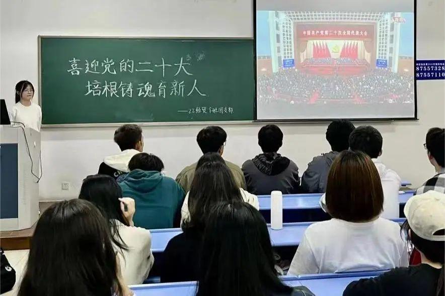 学子观看中国共产党第二十次全国代表大会开幕会直播。本次学习,线上赌博平台