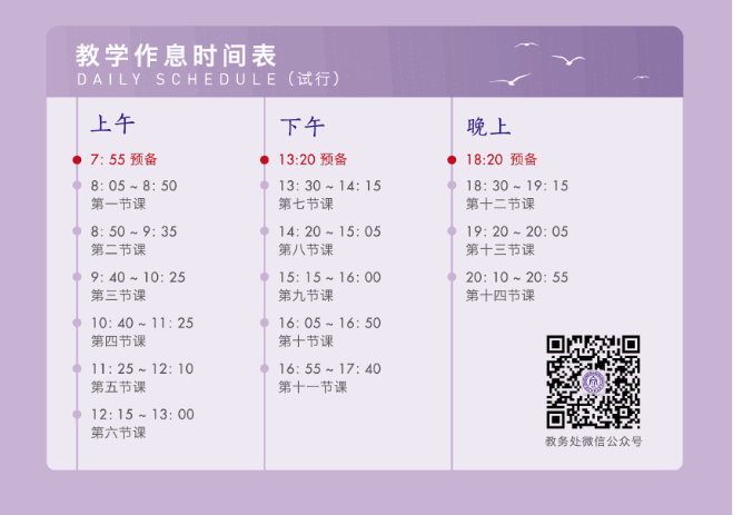 2018——2019学年第二学期教学作息时间表(试行)