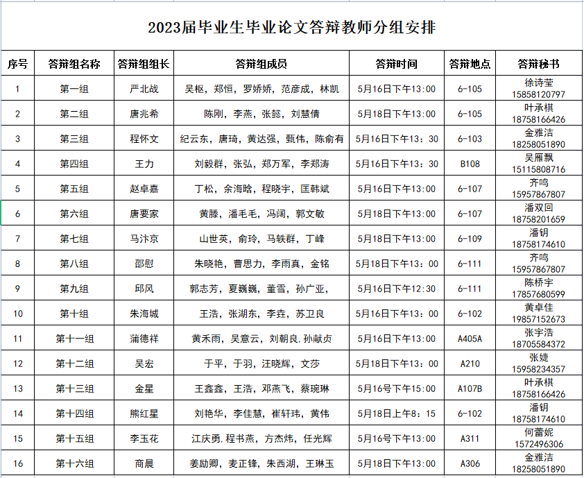 按照线上赌博平台 《关于2023届本科生毕业论文(设计)工作安排的通知》的要求,确保线上赌博平台 2023届毕业生毕业论文开题答辩工作高效、有序开展,同时方便各答辩组教师灵活安排,线上赌博平台 决定采用分组、分时的方式进行开题答辩,拟安排在5月16日-18日进行毕业论文答辩。现将答辩教师分组及答辩时间公布如下: