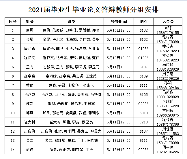 按照线上赌博平台 《关于2021届本科生毕业论文(设计)工作安排的通知》的要求,确保线上赌博平台 2021届毕业生毕业论文开题答辩工作高效、有序开展,同时方便各答辩组教师灵活安排,线上赌博平台 决定采用分组、分时的方式进行开题答辩,拟安排在5月11日-14日进行毕业论文答辩。现将答辩教师分组及答辩时间公布如下: