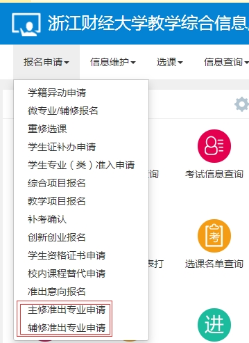 实验班、方向班学生默认从所在专业班级准出,无需填报,如有其他专业(主修)准出意向者在系统中选择相应准出专业)